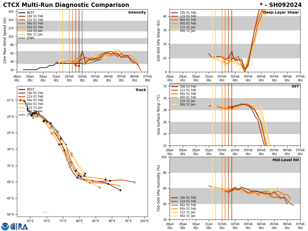 FORECAST REASONING. SIGNIFICANT FORECAST CHANGES: THERE ARE NO SIGNIFICANT CHANGES TO THE FORECAST FROM THE PREVIOUS WARNING. FORECAST DISCUSSION: TROPICAL CYCLONE (TC) 09S IS FORECAST TO ACCELERATE SOUTHEASTWARD AS THE STR STRENGTHENS TO THE EAST AND A HIGH AMPLITUDE STEERING PATTERN SETS UP. THIS STEERING PATTERN WILL DRIVE THE SYSTEM SOUTHEASTWARD THROUGH THE FORECAST PERIOD WITHIN THE ENHANCED FLOW BETWEEN THE STR AND A DEEP UPPER-LEVEL TROUGH. THE SYSTEM WILL CONTINUE TO INTERACT WITH THE DEEP UPPER-LEVEL TROUGH AND COMMENCE SUBTROPICAL TRANSITION BY TAU 24 AS IT TRACKS UNDER A SUBTROPICAL JET. VWS WILL INCREASE TO 35 TO 45 KNOTS WITH DRY AIR ENVELOPING THE SYSTEM AFTER TAU 24. SOME INTENSIFICATION IS LIKELY BUT IS ASSOCIATED WITH THE AFOREMENTIONED DEEP UPPER-LEVEL TROUGH AS THE SYSTEM COMPLETES SUBTROPICAL TRANSITION.