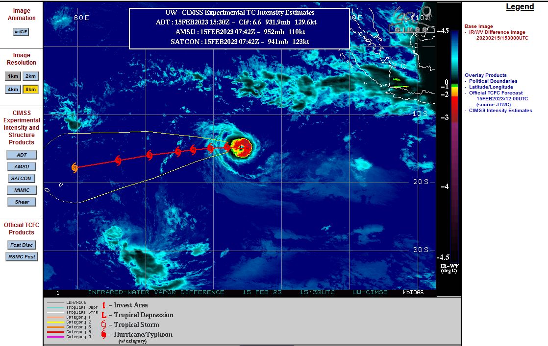 SOUTH INDIAN OCEAN: TC 11S(FREDDY). CURRENT ESTIMATED INTENSITY IS 135 KNOTS CAT 4 US ="SUPER TYPHOON INTENSITY".
