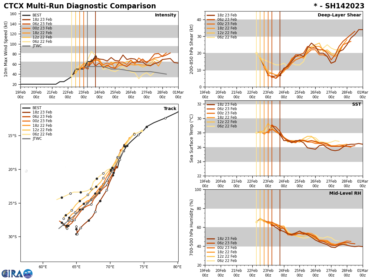 SATELLITE ANALYSIS, INITIAL POSITION AND INTENSITY DISCUSSION: ANIMATED ENHANCED INFRARED (EIR) SATELLITE IMAGERY DEPICTS AN EXTREMELY SMALL TROPICAL CYCLONE, WHICH PEAKED AT OR JUST PRIOR TO 1800Z AND IS NOW ALREADY WEAKENING. EARLIER MICROWAVE IMAGERY AROUND 231308Z SHOWED A VERY CLEAR MICROWAVE EYE FEATURE, AND LATE VISIBLE IMAGERY PRIOR TO SUNSET SHOWED INDICATIONS OF A NASCENT EYE FEATURE, WHICH HAS SINCE DISSIPATED. THE CENTRAL DENSE OVERCAST (CDO) SEEN IN THE EIR HAS BECOME INCREASINGLY RAGGED IN JUST THE PAST HOUR AS WELL. DUE TO THE STEADILY DETERIORATING CDO, THERE IS A WIDE SPREAD IN THE AGENCY FIX POSITIONS AND A LACK OF RECENT HIGH-RESOLUTION MICROWAVE IMAGERY, MEANS THE INITIAL POSITION IS ASSESSED WITH LOW CONFIDENCE. THE INITIAL INTENSITY IS SET WITH MEDIUM CONFIDENCE AT AN AGGRESSIVE 75 KNOTS, WHICH WHILE ABOVE THE MAJORITY OF THE AGENCY FIXES, IS SUPPORTED BY THE PGTW FIX, THE ADT AND AIDT ESTIMATES AS WELL AS A 231630Z ASCAT-B PASS WHICH SHOWED WINDS EXCEEDING 60 KNOTS IN THE CENTER OF THE SYSTEM. APPLYING THE 10-15 KNOT LOW-BIAS CORRECTION FOR ASCAT WINDS AT THIS SPEED EASILY SUPPORTS A 75 KNOT INTENSITY. THE SYSTEM IS TRACKING SOUTHWESTWARD THROUGH A MARGINALLY FAVORABLE ENVIRONMENT CHARACTERIZED BY WARM SSTS, ROBUST POLEWARD OUTFLOW AND MODERATE TO HIGH NORTHWESTERLY VWS.