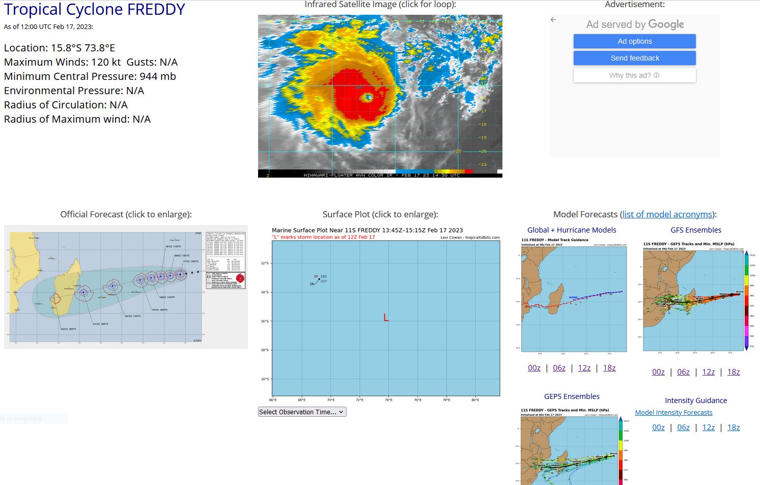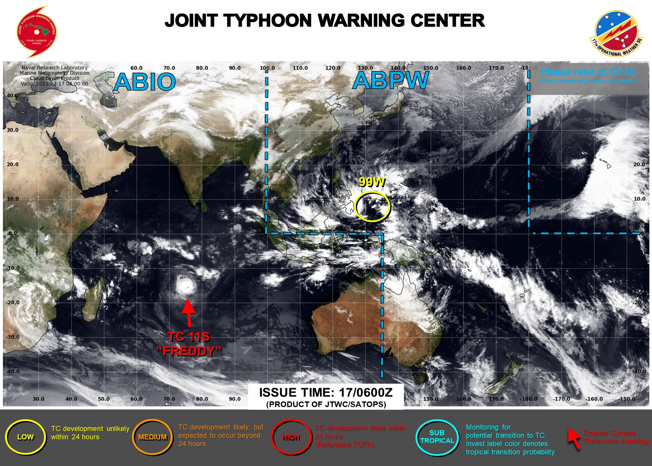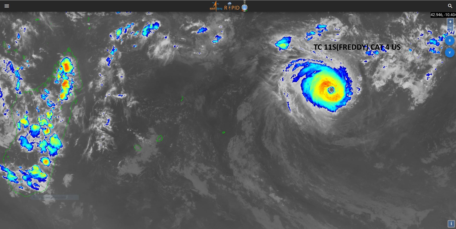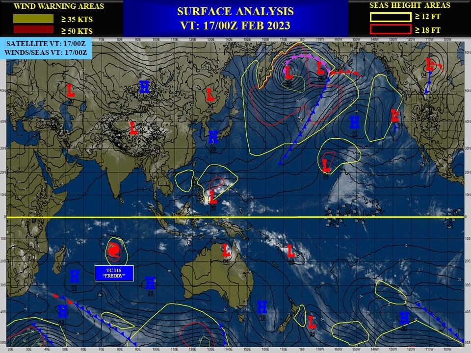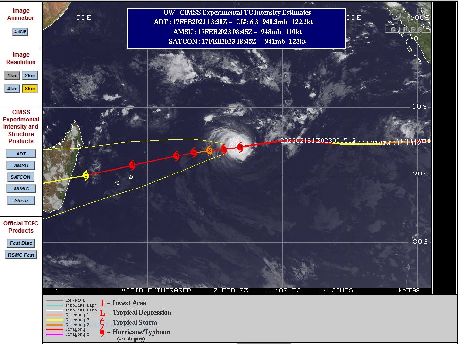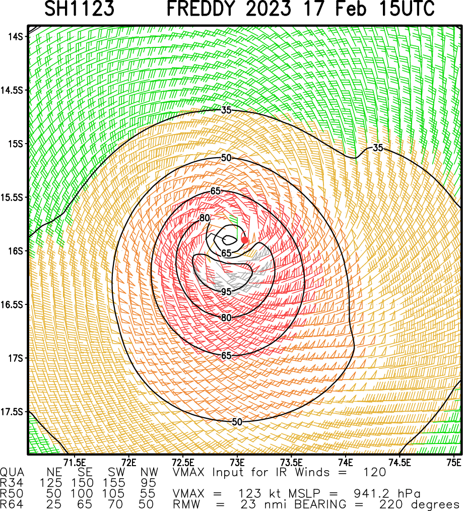 SOUTH INDIAN OCEAN: TC 11S(FREDDY). CURRENT ESTIMATED INTENSITY IS 120 KNOTS CAT 4 US.