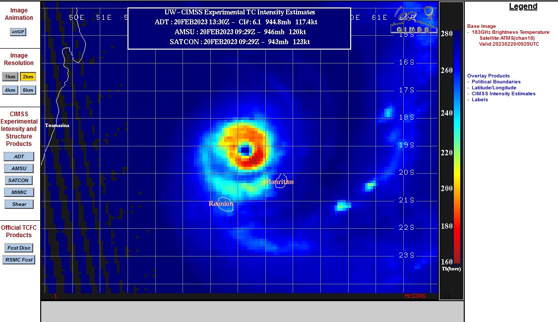 SOUTH INDIAN OCEAN: TC 11S(FREDDY). CURRENT ESTIMATED INTENSITY IS 120 KNOTS CAT 4 US .