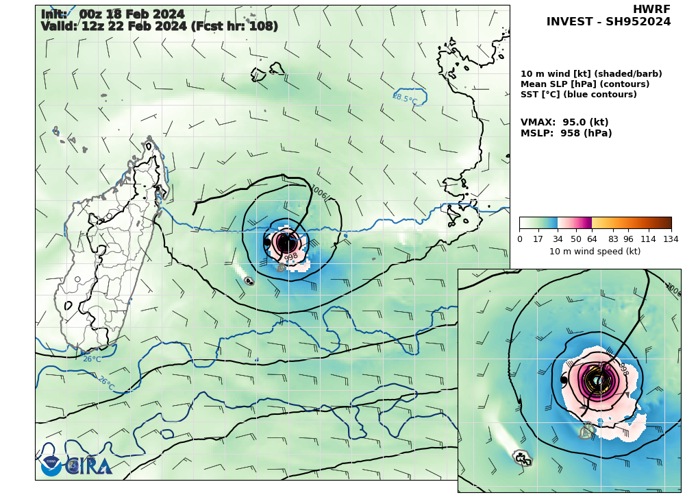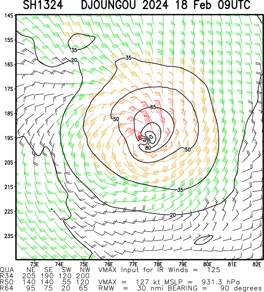 SOUTH INDIAN OCEAN: TC 13S(DJOUNGOU). CURRENT ESTIMATED INTENSITY IS 120 KNOTS/CAT 4 US AT 18/0600UTC: +45 KNOTS OVER 24 HOURS.