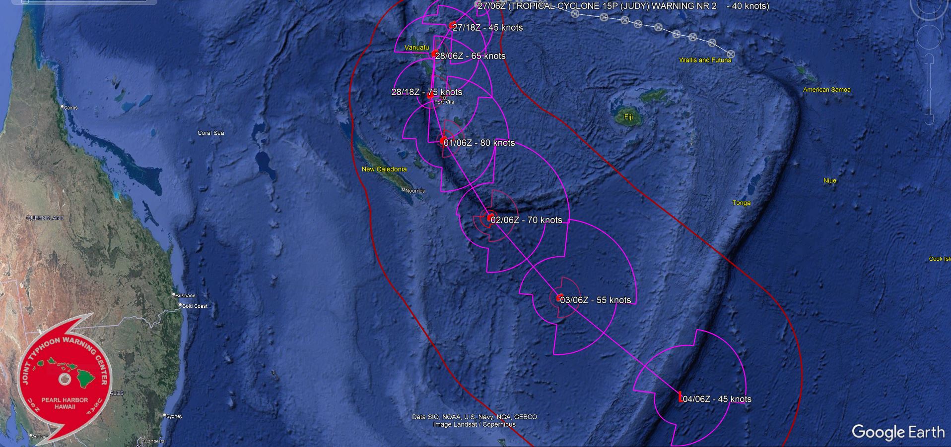 SOUTH PACIFIC OCEAN: TC 15P(JUDY). CURRENT ESTIMATED INTENSITY IS 40 KNOTS AT 27/09UTC.