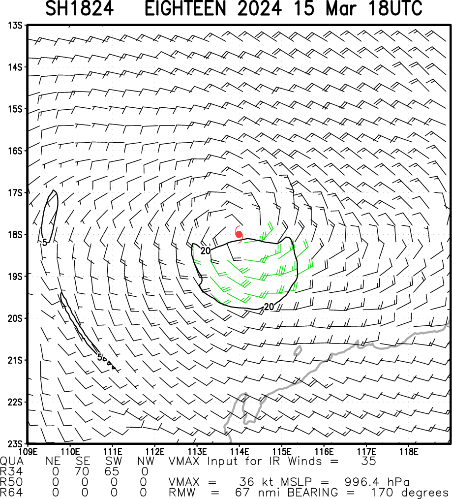 SOUTH INDIAN OCEAN: TC 18S. ESTIMATED INTENSITY IS 35 KNOTS AT 15/18UTC: STABLE OVER 24H