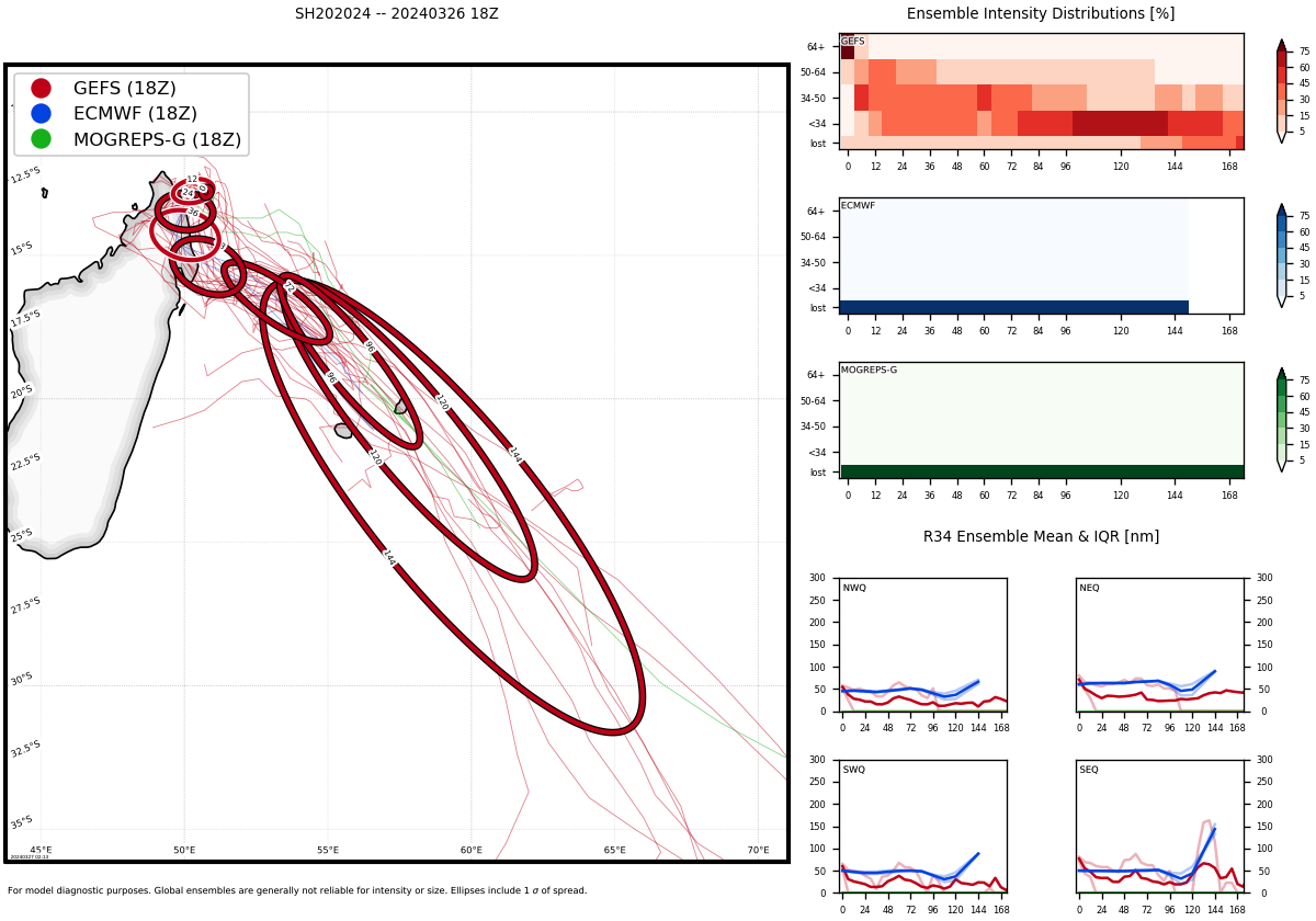 MODEL DISCUSSION: DETERMINISTIC MODEL GUIDANCE HAS SOME DISAGREEMENT IN THE NEAR-TERM WITH RESPECT TO HOW FAR TC 20S WILL MOVE INTO MADAGASCAR AFTER LANDFALL. THE CROSS-TRACK ERROR AT TAU 24 IS 100NM. ADDITIONALLY, THERE APPEARS TO BE DISAGREEMENT IN HOW QUICKLY THE SYSTEM WILL TRANSIT TO THE SOUTHEAST, LIKELY DUE TO DIFFERENCES IN MODEL INTERPRETATION HOW THE NER TO THE EAST WILL RECEDE TOWARDS THE CENTRAL INDIAN OCEAN. THE INTENSITY MODEL GUIDANCE IS IN AGREEMENT THAT THE SYSTEM WILL WEAKEN OVER THE COURSE OF THE FIRST 48 HOURS, BUT THERE IS SOME DISAGREEMENT REGARDING THE RATE OF WEAKENING THEREAFTER, ALTHOUGH MOST OF THE GUIDANCE KEEPS THE SYSTEM INTENSITY ABOVE 35KTS THROUGH THE FORECAST PERIOD.