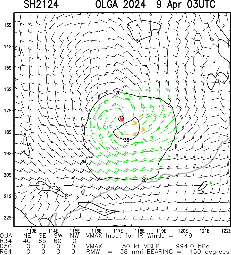 SOUTH INDIAN OCEAN: TC 21S(OLGA).ESTIMATED INTENSITY IS 50 KNOTS AT 09/00UTC: - 40 KNOTS OVER 24 HOURS.