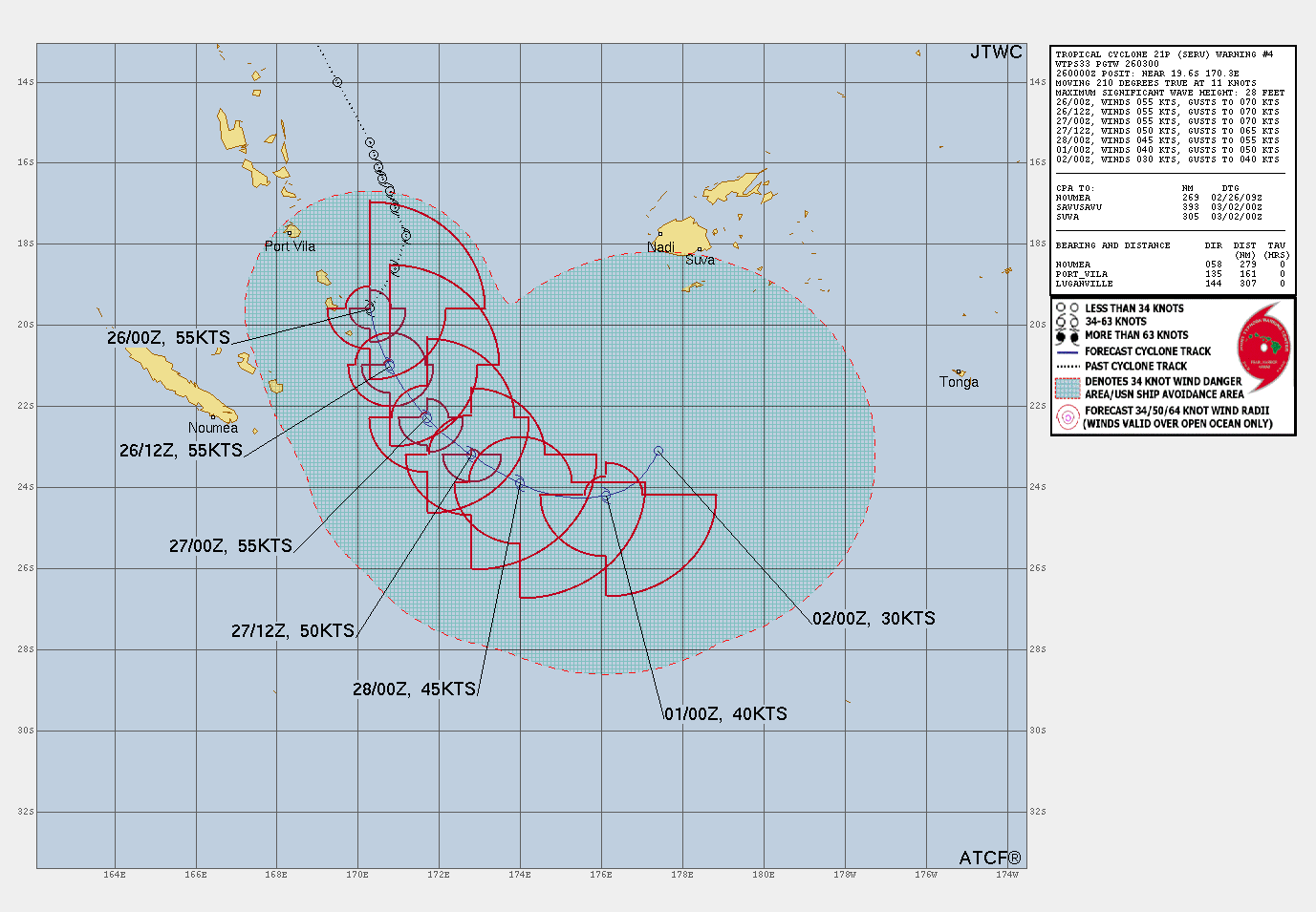 SOUTH PACIFIC OCEAN: TC 21P(SERU). 26/00UTC ESTIMATED INTENSITY IS 55 KNOTS. STABLE OVER 24 HOURS.