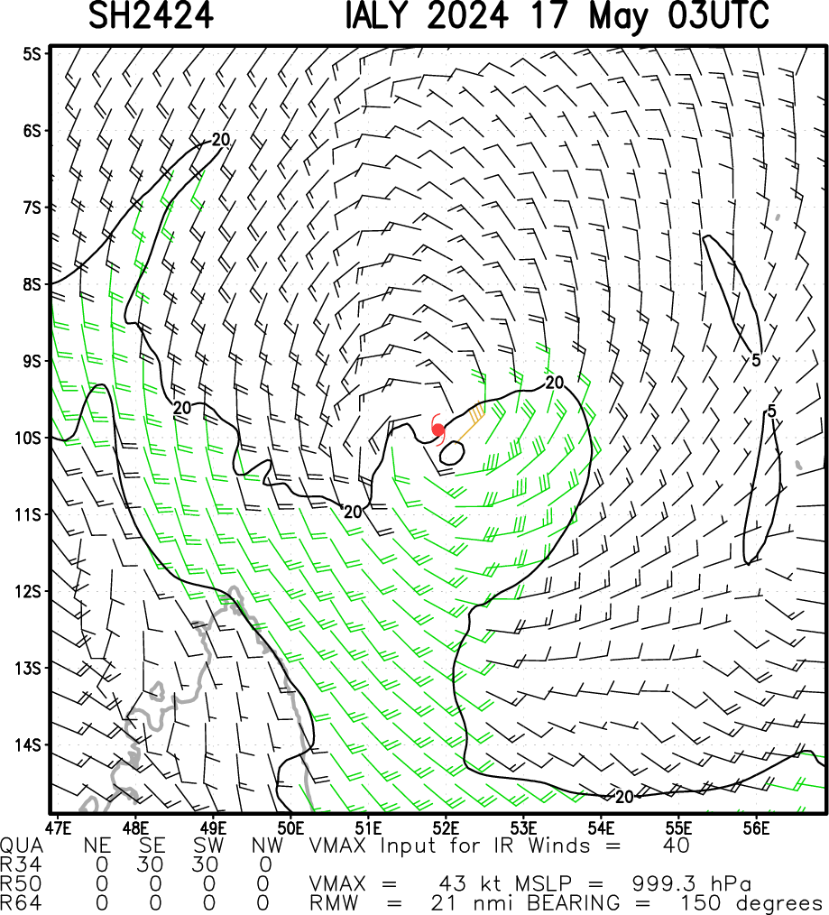 SOUTH INDIAN OCEAN: TC 24S(IALY). ESTIMATED LOCATION AND INTENSITY AT 17/00UTC. INTENSITY IS 40 KNOTS:+10 KNOTS OVER 24H