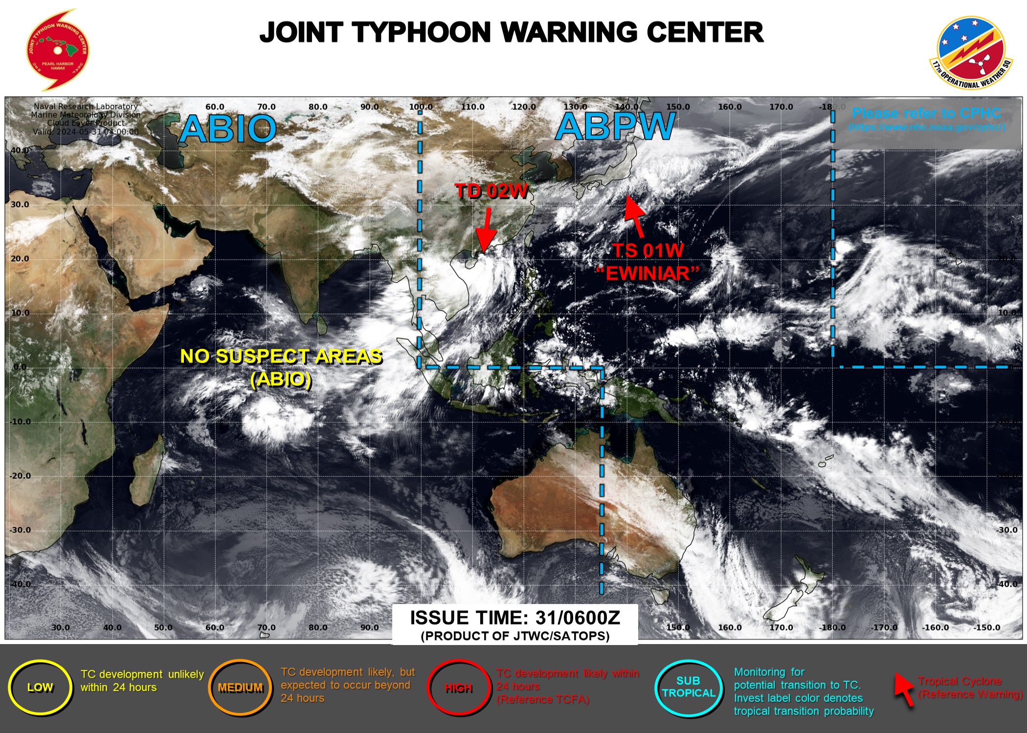 JTWC IS ISSUING 6HOURLY WARNINGS AND 3HOURLY SATELLITE BULLETINS ON 02W AND 3HOURLY SATELLITE BULLETINS ON INVEST 94S