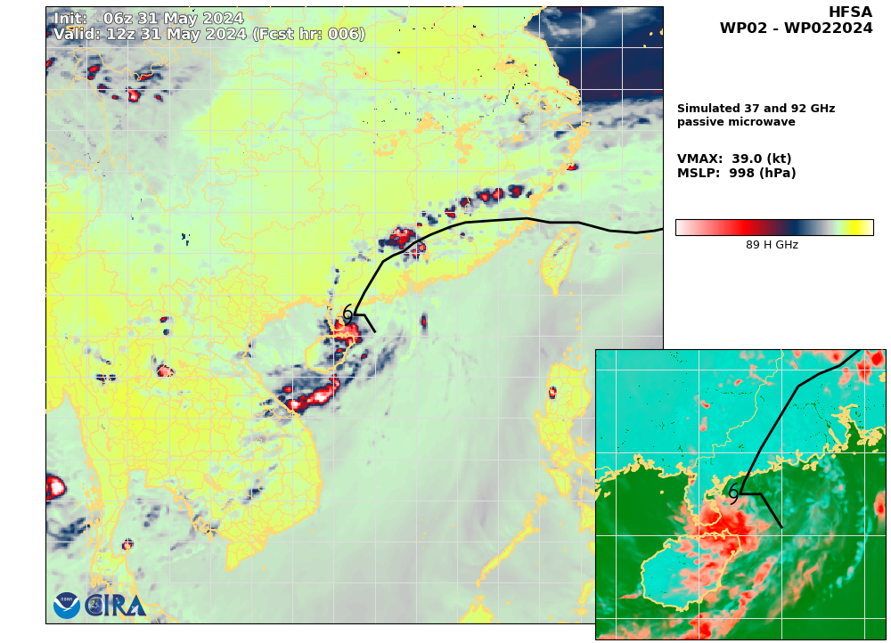 SATELLITE ANALYSIS, INITIAL POSITION AND INTENSITY DISCUSSION: ANIMATED ENHANCED INFRARED (EIR) SATELLITE IMAGERY DEPICTS A SLOWLY CONSOLIDATING, BUT STILL RATHER DISORGANIZED SYSTEM, APPROACHING THE COAST OF SOUTHERN CHINA. NO MAJOR CHANGES HAVE BEEN OBSERVED OVER THE PAS SIX HOURS, WITH MULTIPLE LOW-LEVEL VORTICES STILL CIRCLING AROUND ONE ANOTHER, WHILE THE LARGER CIRCULATION TRACKS NORTHWARD. RECENT ANIMATED RADAR DATA PROVIDES THE BEST VIEW OF THE LOW-LEVEL STRUCTURE AND REVEALS AT LEAST TWO SPINNERS ROTATING ABOUT A CENTROID, WITH WELL-DEFINED SPIRAL RAINBANDS STRETCHING ACROSS NORTHERN HAINAN AND UP THE EASTERN SIDE OF THE LOW LEVEL CIRCULATION CENTER (LLCC). THE INITIAL POSITION IS PLACED IN THE CENTROID OF THE MULTIPLE VORTICES, ASSESSED WITH MEDIUM CONFIDENCE. THE INITIAL INTENSITY OF 30 KNOTS IS ALSO ASSESSED WITH MEDIUM CONFIDENCE, IN LINE WITH THE HIGHER END DVORAK CURRENT INTENSITY ESTIMATES OF T2.0 FROM KNES AND RCTP, AND THE DMINT ESTIMATE OF 28 KNOTS. SURFACE OBSERVATIONS FROM YANGJIAN AND SHANGCHUAN DAO (NORTH AND NORTHEAST OF THE LLCC RESPECTIVELY) ARE IN THE 10-15 KNOT RANGE, SUPPORTING THE FACT THAT THE HIGHEST WINDS ARE CONFINED TO THE SOUTH AND SOUTHEASTERN QUADRANT OF THE CIRCULATION CENTER. ANALYSIS REVEALS A MARGINAL ENVIRONMENT CHARACTERIZED BY WARM (27-28C) WATERS, WHICH WHILE STILL WARM ENOUGH TO SUPPORT DEVELOPMENT, HAVE STEADILY COOLED AS THE SYSTEM APPROACHES THE COAST, AND STRONG POLEWARD OUTFLOW OFFSET BY LOW TO MODERATE NORTHEASTERLY VWS. THE SYSTEM IS MOVING NORTHWESTWARD ALONG THE WESTERN SIDE OF A DEEP SUBTROPICAL RIDGE (STR) TO THE EAST.