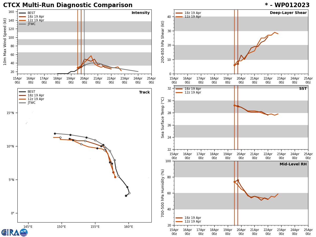 MODEL DISCUSSION: AVAILABLE NUMERICAL MODEL TRACK FORECAST GUIDANCE REMAINS IN GOOD AGREEMENT REGARDING A GENERALLY NORTHWESTWARD TRACK IN THE NEAR-TERM FOLLOWED BY AN INCREASINGLY WESTWARD TRACK AFTER TAU 24. NAVGEM IS THE SOLE OUTLIER IN TERMS OF TRACK ORIENTATION, INDICATING A TRACK TO THE NORTH OF THE PRIMARY GUIDANCE ENVELOPE LIKELY DUE TO STRONG INTENSIFICATION IN THE MODEL ON THE CURRENT RUN. THE CURRENT TRACK FORECAST IS PLACED WITH MEDIUM CONFIDENCE WITHIN THE PRIMARY MODEL GROUPING, SLIGHTLY TO THE SOUTH OF THE CONSENSUS TRACK. ASIDE FROM THE LATEST NAVGEM SOLUTION, GLOBAL AND MESOSCALE DYNAMIC MODELS, INCLUDING HWRF AND COAMPS-TC, REMAIN IN GOOD AGREEMENT REGARDING THE INTENSITY FORECAST TREND. SHIPS STATISTICAL-DYNAMICAL INTENSITY GUIDANCE INDICATES HIGHER INTENSITIES, WHICH REMAINS AS A LOW PROBABILITY OUTCOME IF THE SYSTEM VERY QUICKLY ORGANIZES OVER THE NEXT 12-24 HOURS AND MODIFIES THE ENVIRONMENT SIGNIFICANTLY TO WARD OFF THE NEGATIVE IMPACTS OF INCREASING SHEAR AND DRIER AIR ENTRAINMENT. GIVEN THE SMALL SIZE OF THE SYSTEM AND CURRENT STARTING POINT AS A WEAK TROPICAL STORM, A LONGER SURVIVAL OF THE SYSTEM IS ASSESSED AS A LOW PROBABILITY OUTCOME. CONFIDENCES IN BOTH THE TRACK AND INTENSITY FORECASTS ARE MEDIUM BASED ON MARGINAL UNCERTAINTY IN THE SHIFTING STEERING ENVIRONMENT AND NEAR-TERM INTENSIFICATION TREND, RESPECTIVELY.