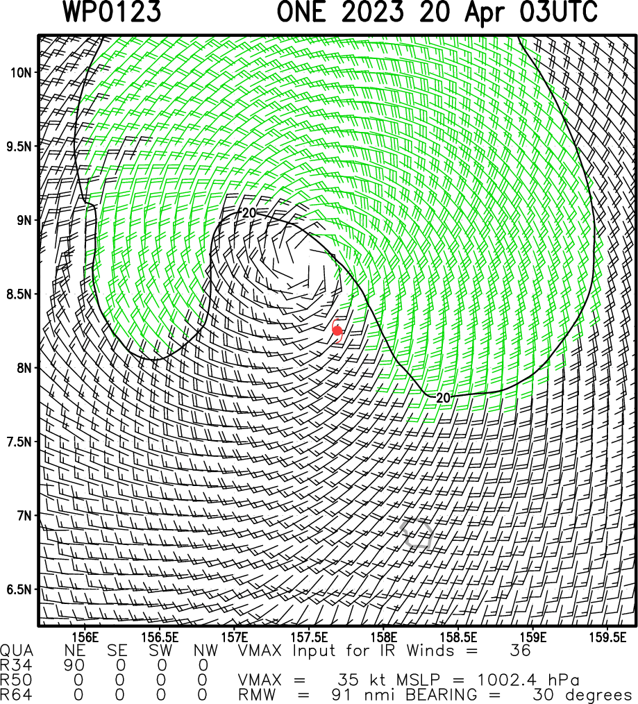 WESTERN NORTH PACIFIC: TS 01W. ESTIMATED INTENSITY IS 35 KNOTS AT 20/00UTC: +10 KNOTS/OVER 24HOURS.