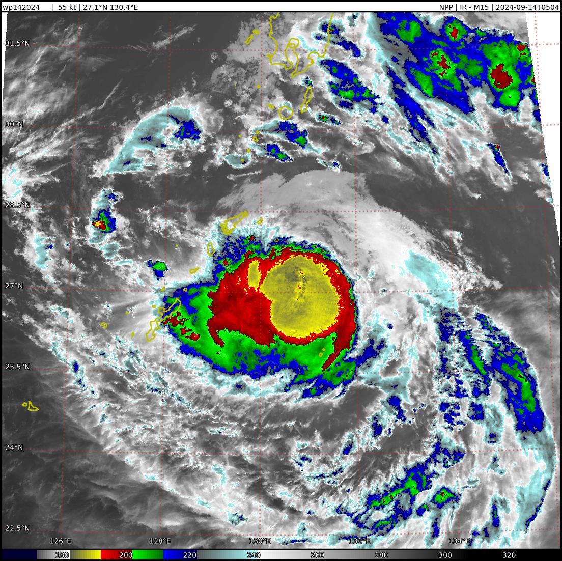 FORECAST REASONING. SIGNIFICANT FORECAST CHANGES: THERE ARE NO SIGNIFICANT CHANGES TO THE FORECAST FROM THE PREVIOUS WARNING. FORECAST DISCUSSION: THE SYSTEM HAS BEEN DRIVEN NORTHWESTWARD UNDER THE STEERING INFLUENCE OF A SUBTROPICAL RIDGE TO THE EAST, BUT IT WILL SOON TURN TO A MORE WESTWARD TRACK AS A RESULT OF AN EAST-WEST ORIENTED EXTENSION OF THE SUBTROPICAL RIDGE, WHICH IS ACTING AS A STRONG BARRIER TO THE NORTH OF THE SYSTEM. THE SYSTEM WILL MAINTAIN A FASTER PACE THAN THE CLIMATOLOGICAL AVERAGE AS IT CROSSES THE RYUKYU ISLAND CHAIN IN THE NEXT SIX HOURS. THE ENVIRONMENT WILL BE FAVORABLE FOR DEVELOPMENT, BUT THERE WILL BE LIMITED OPPORTUNITY FOR TS 14W TO INTENSIFY MUCH FURTHER BEFORE IT ARRIVES AT THE ASIAN CONTINENT NEAR TAU 48. ONCE THE SYSTEM MAKES LANDFALL IN CHINA, IT WILL QUICKLY DISSIPATE OVER LAND BY TAU 72.