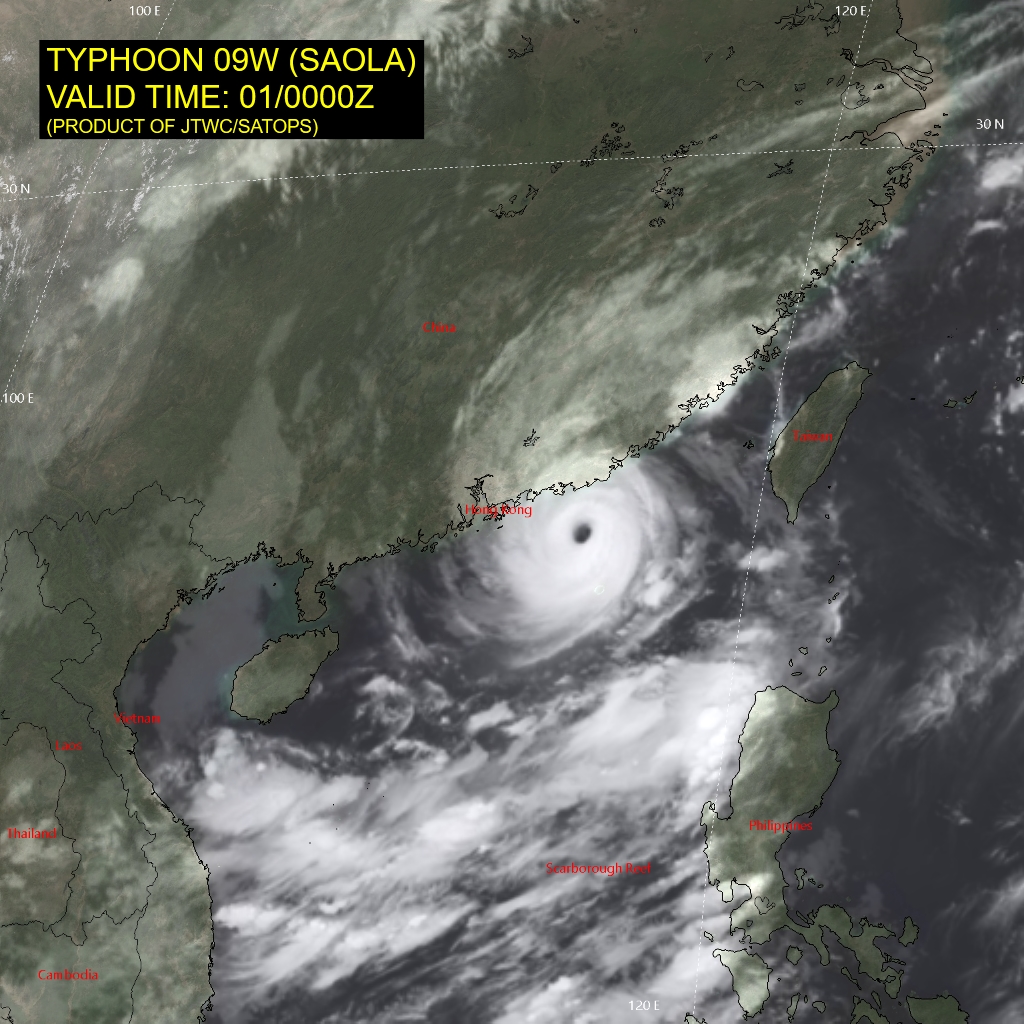 WESTERN NORTH PACIFIC: TY 09W(SAOLA). CURRENT ESTIMATED INTENSITY IS 120 KNOTS/CAT 4 US: -15 KNOTS/24H.