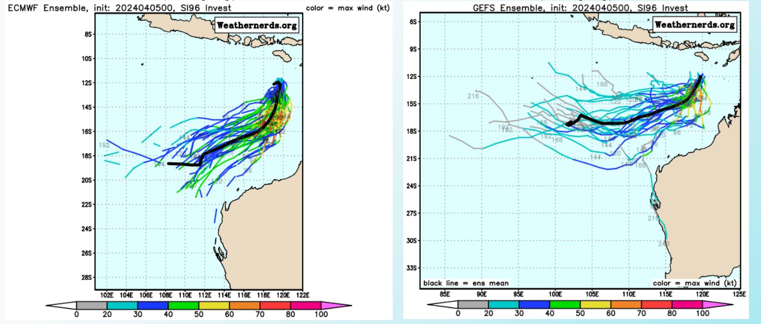 GLOBAL MODELS ARE IN GOOD AGREEMENT THAT 96S WILL CONTINUE TO CONSOLIDATE AND TRACK SOUTHWESTWARD OVER THE NEXT 24 HOURS, OFF THE NORTHWESTERN COAST OF AUSTRALIA. INTENSITY GUIDANCE SUGGESTS THE SYSTEM MAY RAPIDLY INTENSIFY IN THE NEXT 24 HOURS, AS IT TAKES ADVANTAGE OF THE ROBUST POLEWARD OUTFLOW AND WARM SSTS.