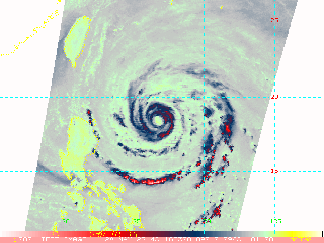 WESTERN NORTH PACIFIC: TY 02W(MAWAR). CURRENT ESTIMATED INTENSITY IS 105 KNOTS(CAT 3 US) AT 28/18UTC: -15 KNOTS OVER 24HOURS.