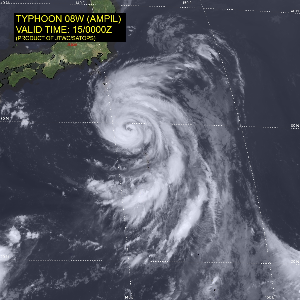 WESTERN NORTH PACIFIC: TY 08W(AMPIL). WARNING 3 ISSUED AT 1303UTC. ESTIMATED INTENSITY IS 85 KNOTS/CAT 2 US: +25 KNOTS OVER 24 HOURS.