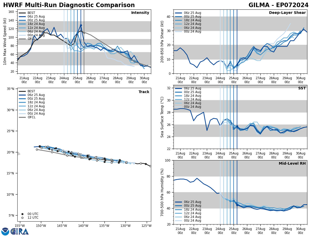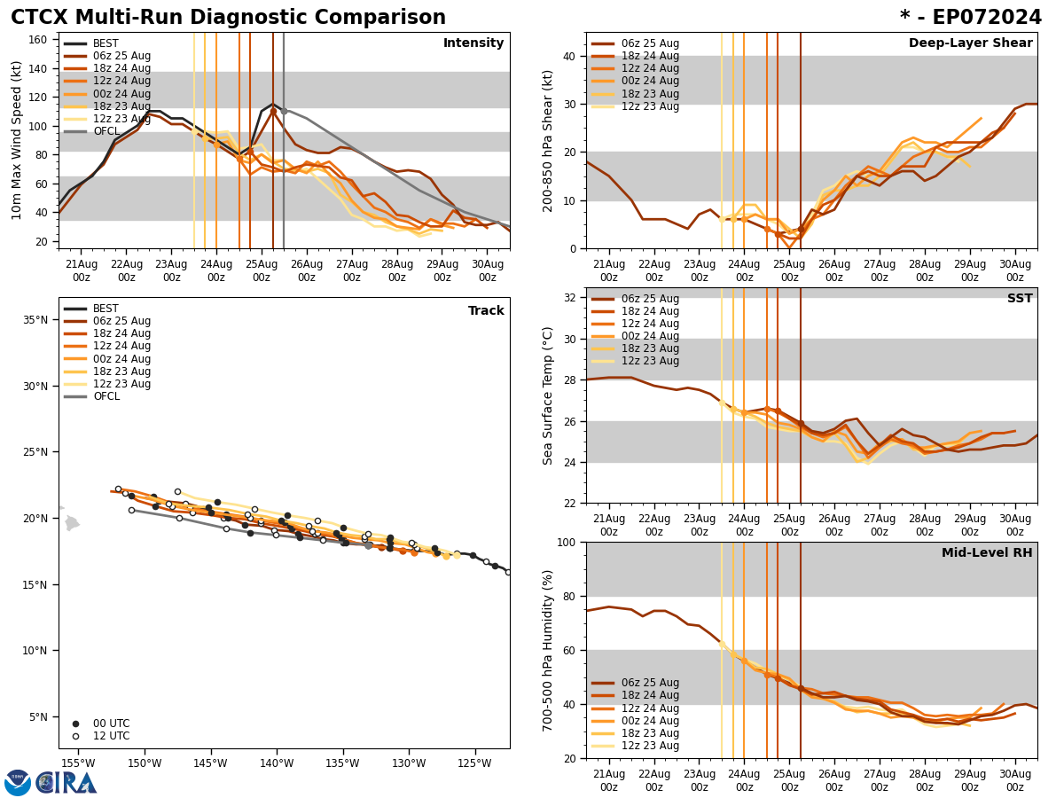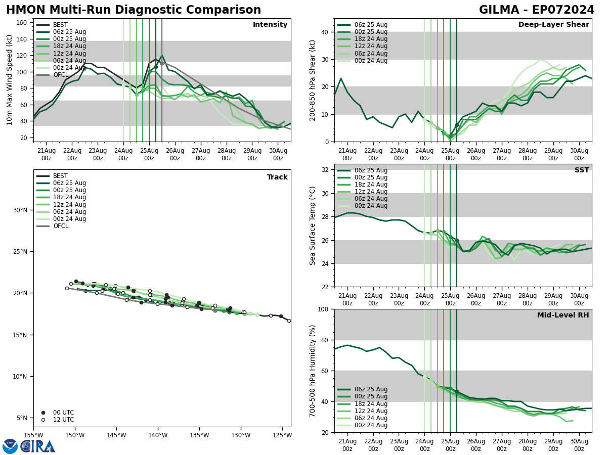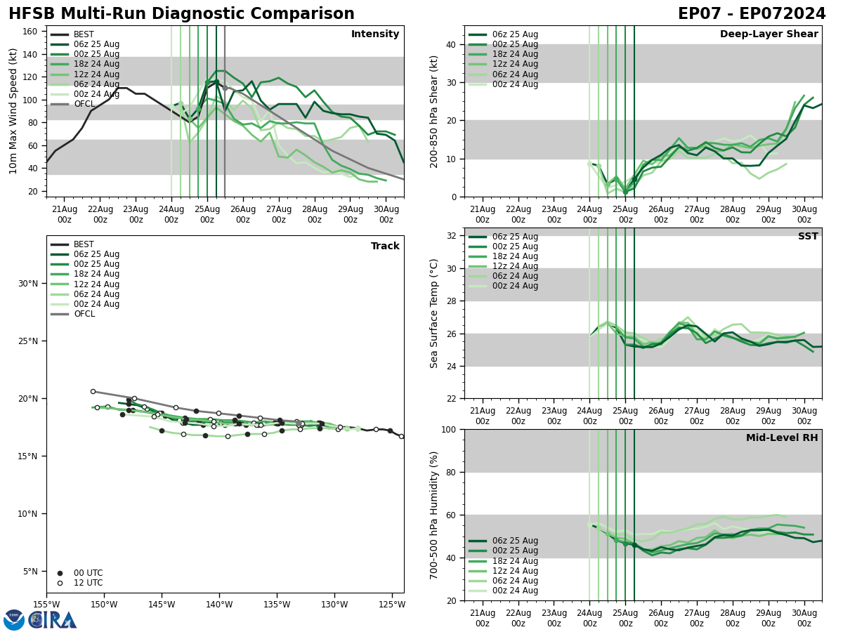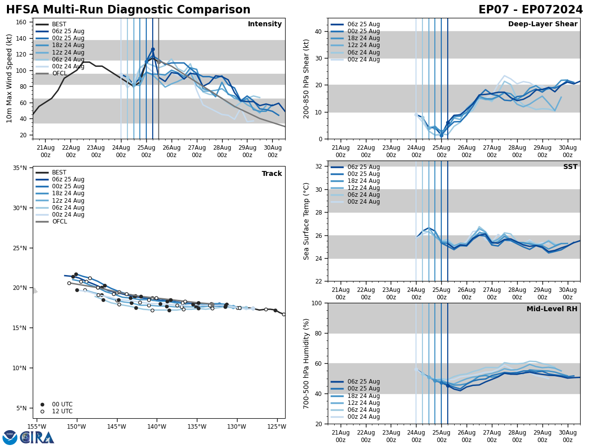 SATELLITE ANALYSIS, INITIAL POSITION AND INTENSITY DISCUSSION: ANIMATED ENHANCED INFRARED (EIR) SATELLITE IMAGERY SHOWS A MEDIUM-SIZED SYSTEM THAT CONTINUED TO SLOWLY CONSOLIDATE AS EVIDENCED BY COOLING CONVECTIVE TOPS OVER THE COLD DENSE OVERCAST (CDO) THAT HAS RECENTLY DEVELOPED A PINHOLE EYE. A ROBUST POLEWARD OUTFLOW, A TUTT CELL AND DRY AIR INTRUSION ALONG THE WESTERN FLANK ARE ALSO EVIDENT ON THE EIR LOOP. THE INITIAL POSITION IS PLACED WITH HIGH CONFIDENCE BASED ON THE PINHOLE EYE, ADJUSTED FOR A SLIGHT FORWARD TILT AND LINED UP WITH A MICROWAVE EYE ON THE 250857Z SSMIS IMAGE. THE INITIAL INTENSITY OF 75KTS IS ALSO ASSESSED WITH HIGH CONFIDENCE BASED ON THE HIGH END OF AGENCY AND OBJECTIVE DVORAK ESTIMATES AND REFLECTS THE IMPROVED 6-HR EIR SIGNATURE. ANALYSIS INDICATES A FAVORABLE ENVIRONMENT WITH WARM ALONG-TRACK SST AND A STRONG, EFFICIENT VENTILATION ALOFT OFFSET BY MODERATE RELATIVE VWS, SUBSIDENCE FROM THE TUTT CELL TO THE WEST, AND COLD DRY AIR INTRUSION AT THE LOWER LEVELS.