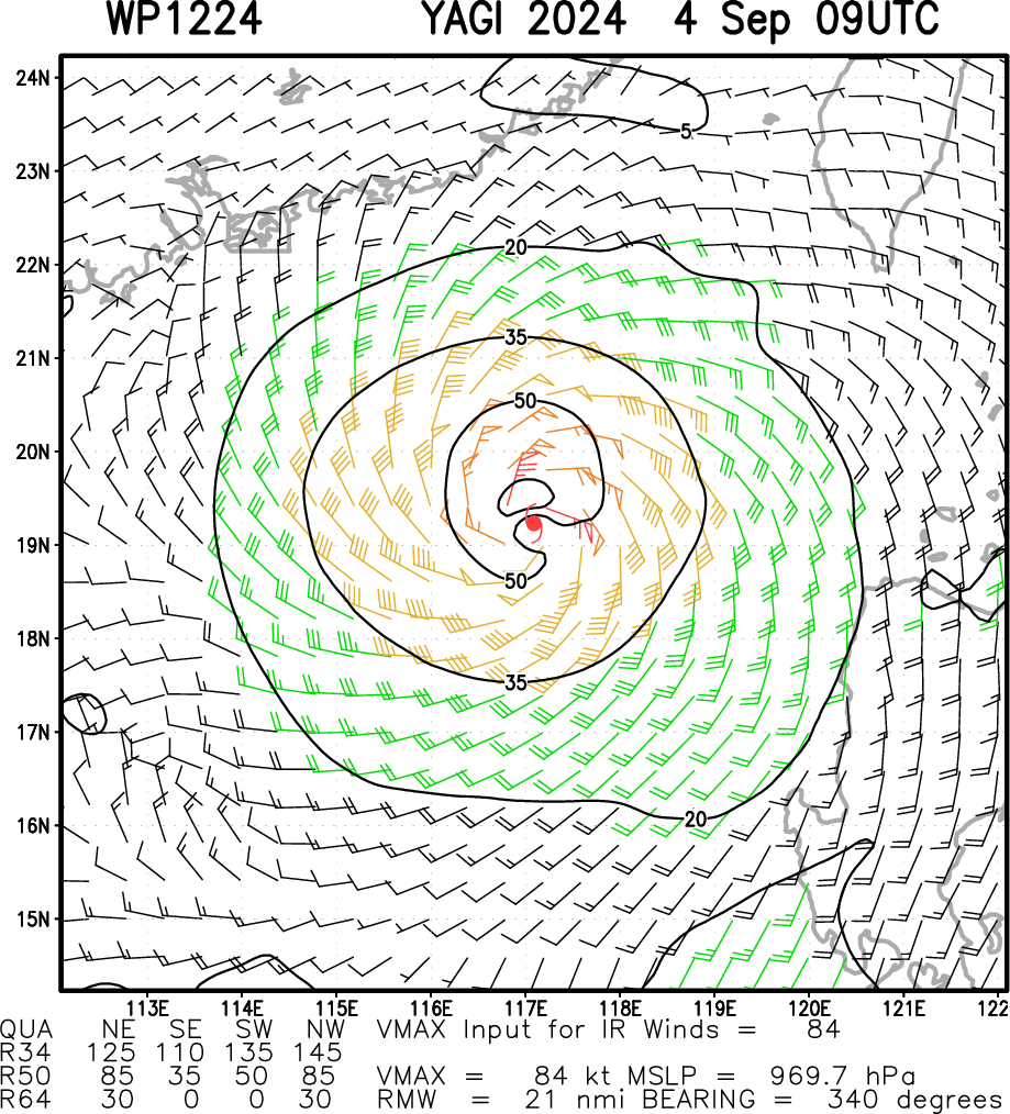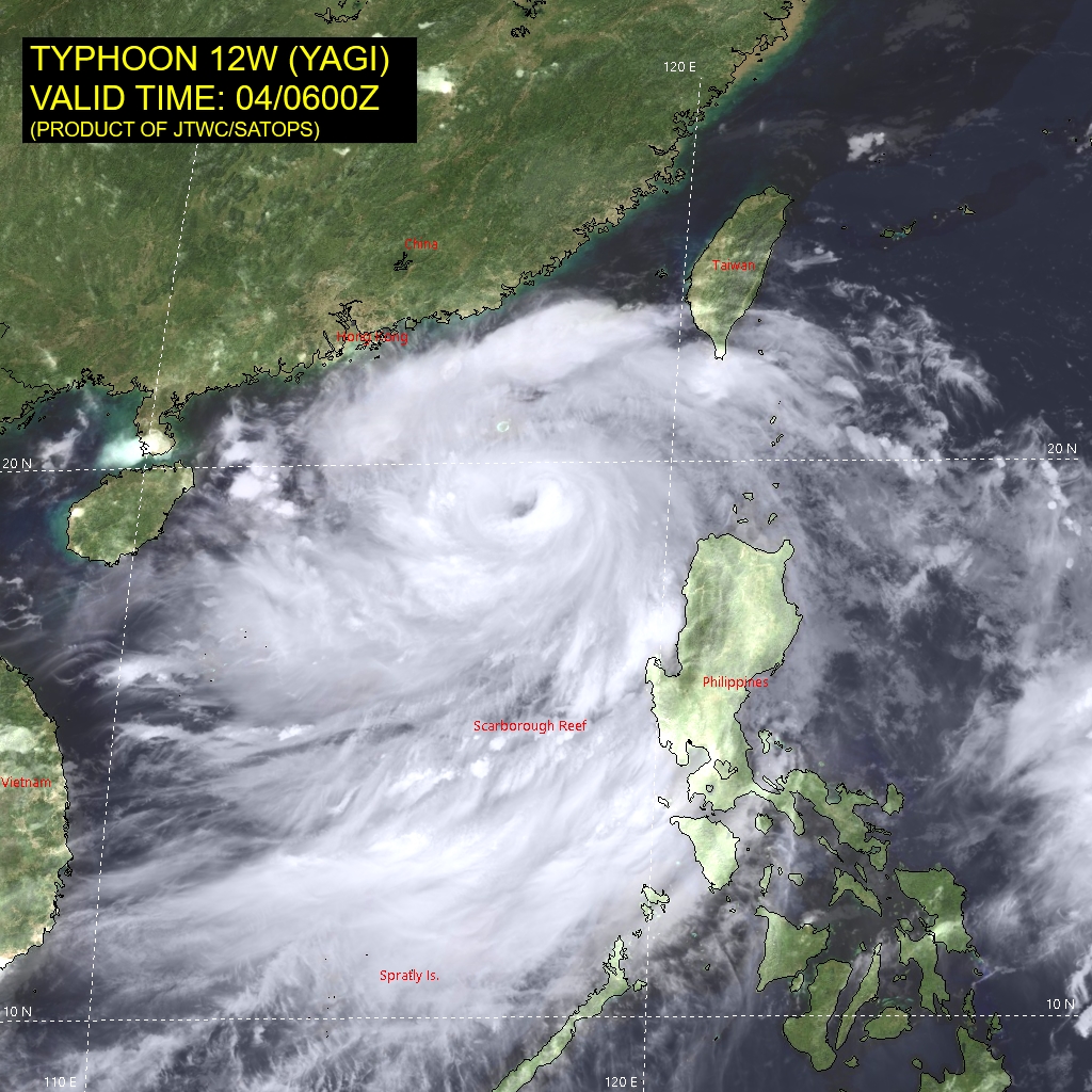 WESTERN NORTH PACIFIC: TY 12W(YAGI). 04/06UTC ESTIMATED INTENSITY IS 80 KNOTS/CAT 1 US: + 35 KNOTS OVER 24H.