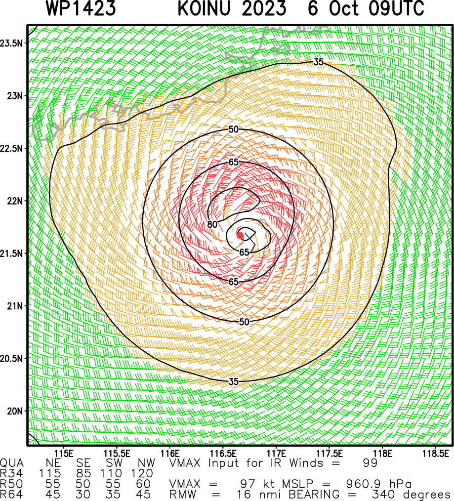 WESTERN NORTH PACIFIC: TY 14W(KOINU). CURRENT ESTIMATED INTENSITY IS 100 KNOTS/CAT 3 US: +10 KNOTS/24H.